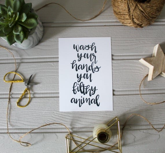 Black and white Wash your hands you filthy animal print in A4
